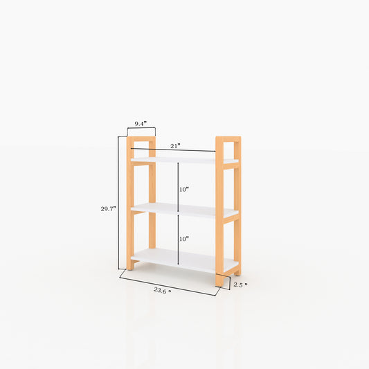 GLSCASA 3-tiers Storage Bookcase with Solid Wood Frame,White