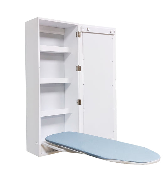 GLSCASA Slim Wall Mounted Ironing Board Cabinet, Foldable Ironing Board Pad with Storage, Ironing Board Closet with Mirror Door, White