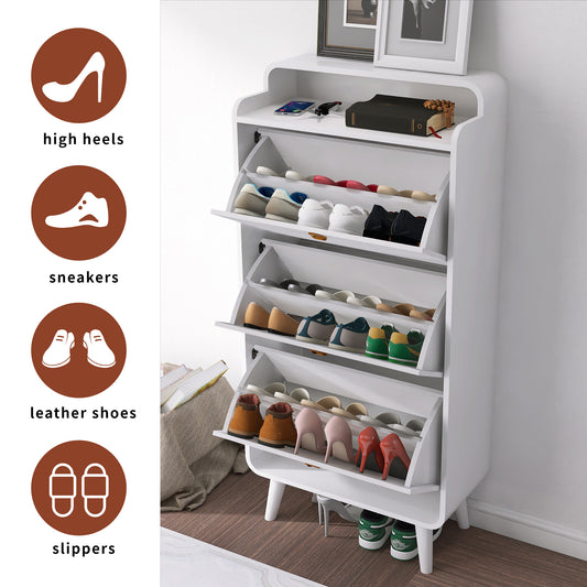 Modern Arc Design Shoe Cabinet With 3 Drawers,Shoe Storage Cabinet for Entryway,Outdoor,White Finish