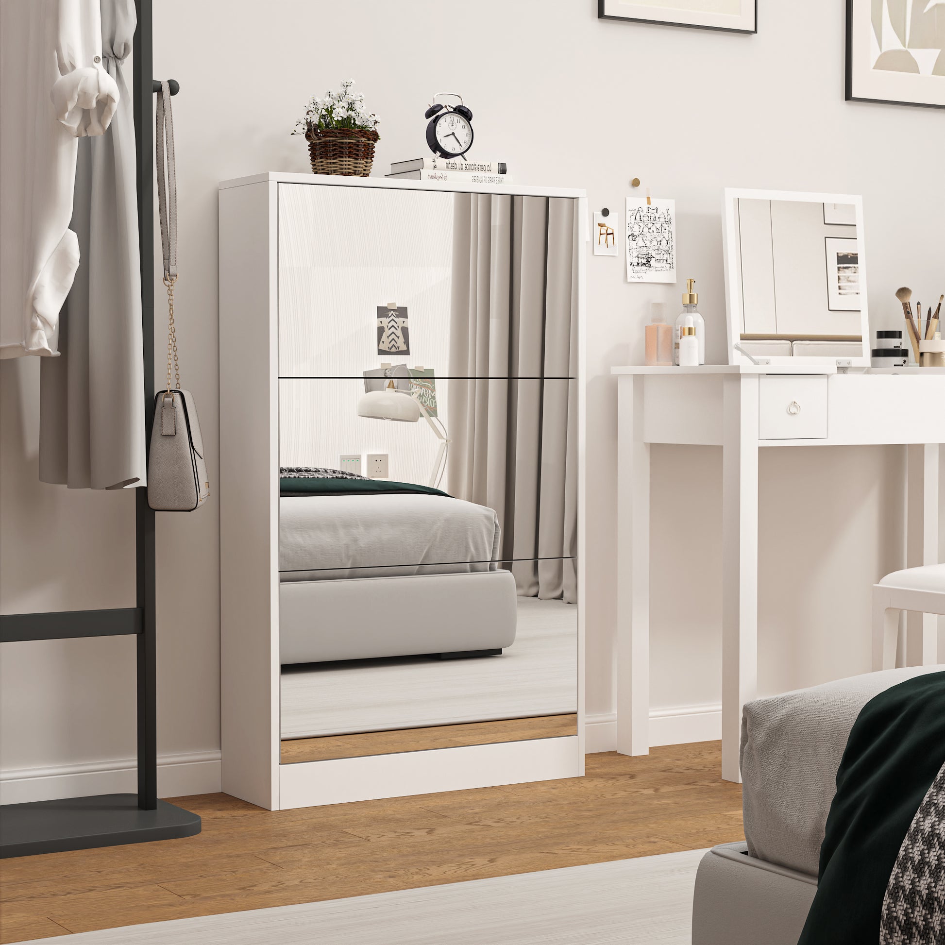 Modern Shoe Cabinet with Small Mirror Edge Gap, Mirror Shoe Rack Organizer with 3 Flip Drawers, Shoe Storage Cabinet for Entryway, Living room, Dressing room